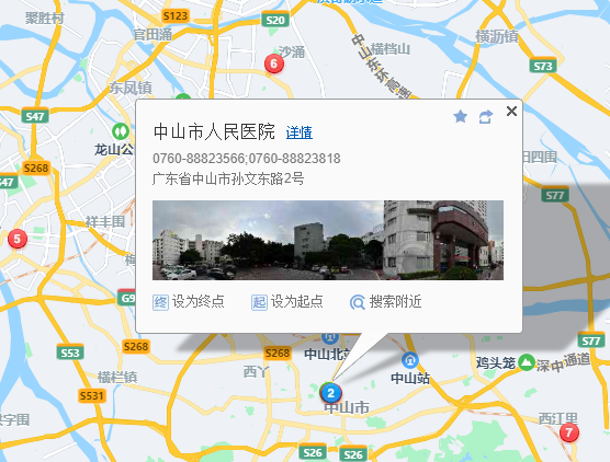 医院地址:广东省中山市孙文东路2号