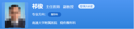 医生介绍:祁俊是副主任医师,博士。在整形行业工作了十多年,先后在国内外知名的杂志上发表了十多篇的文章。主持市级和的课题多项,还获得了各种的奖项。