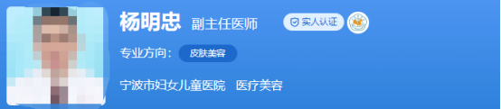 医生介绍:杨明忠是副主任医师,硕士研究生。在整形美容行业工作了20多年,可以说是经验丰富。还是浙江省医学会烧伤及创面修复分会委员、中华医学会宁波市小儿外科分会委员等。